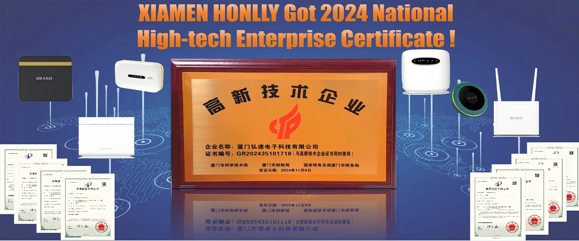 After a series of qualification investigation, Xiamen Honlly got 2024 national high-tech enterprise certificate. This is the prove of a company's research & development capacity, and the ability to transfer the research result into asset, to bring more high quality and technology 4G/5G mobile broadband to the market.